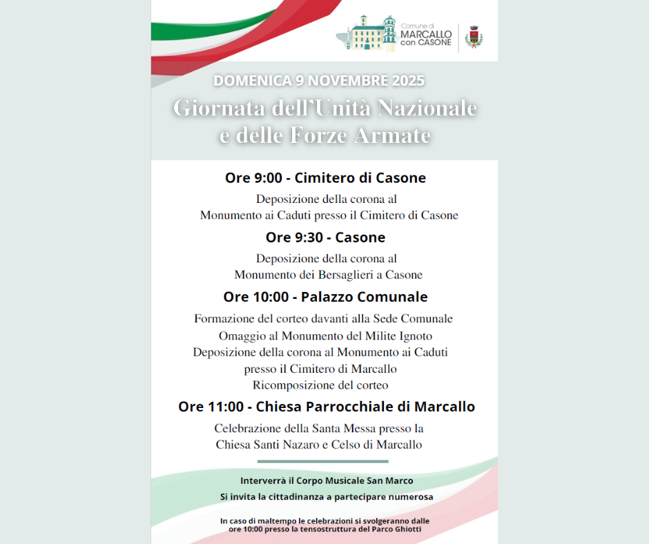 Ad accompagnare la cerimonia sarà il Corpo Musicale San Marco