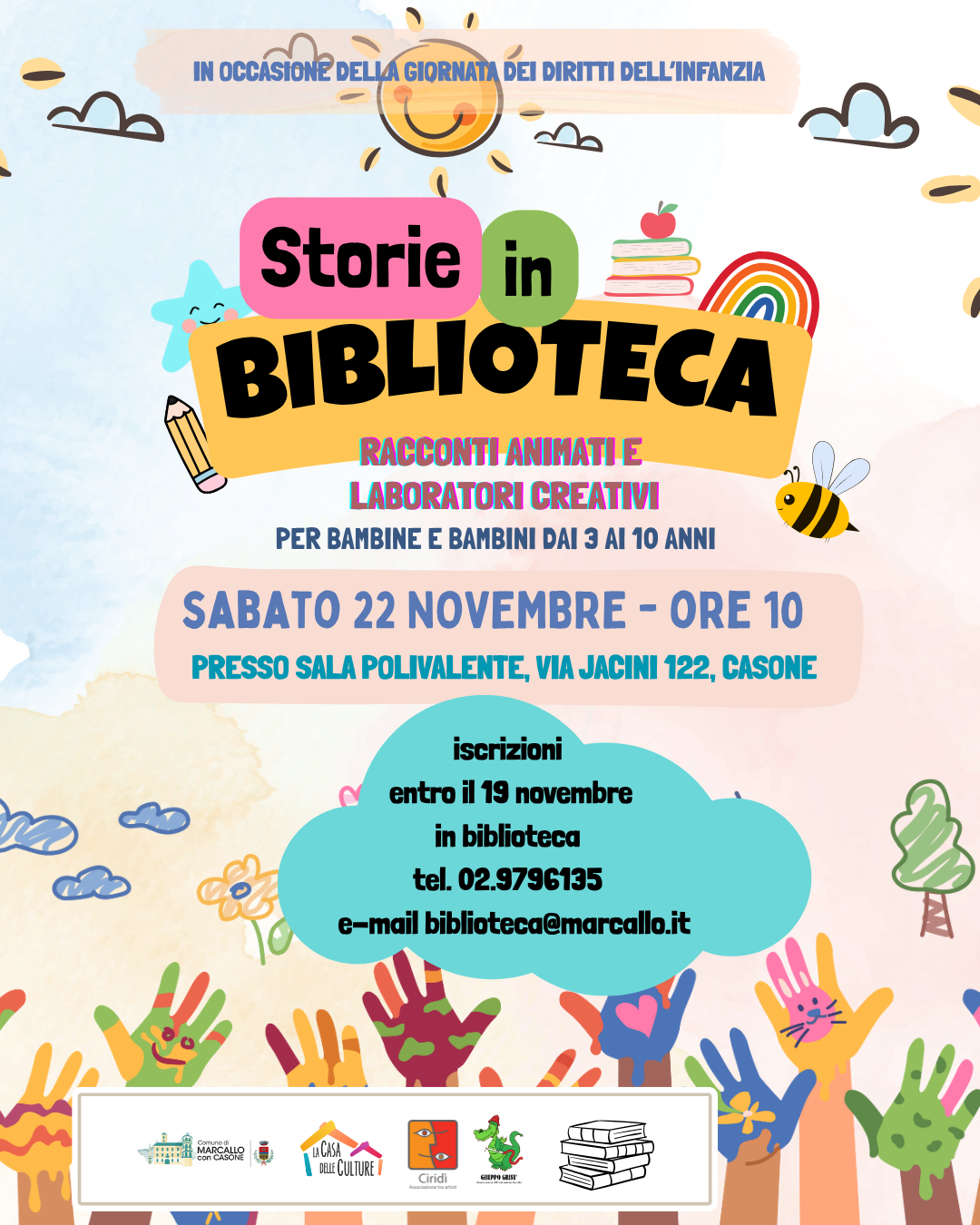 In occasione della Giornata dei Diritti dell’Infanzia, la Biblioteca Comunale propone l’iniziativa “Storie in Biblioteca”, una mattinata dedicata ai più piccoli con racconti animati e laboratori creativi.